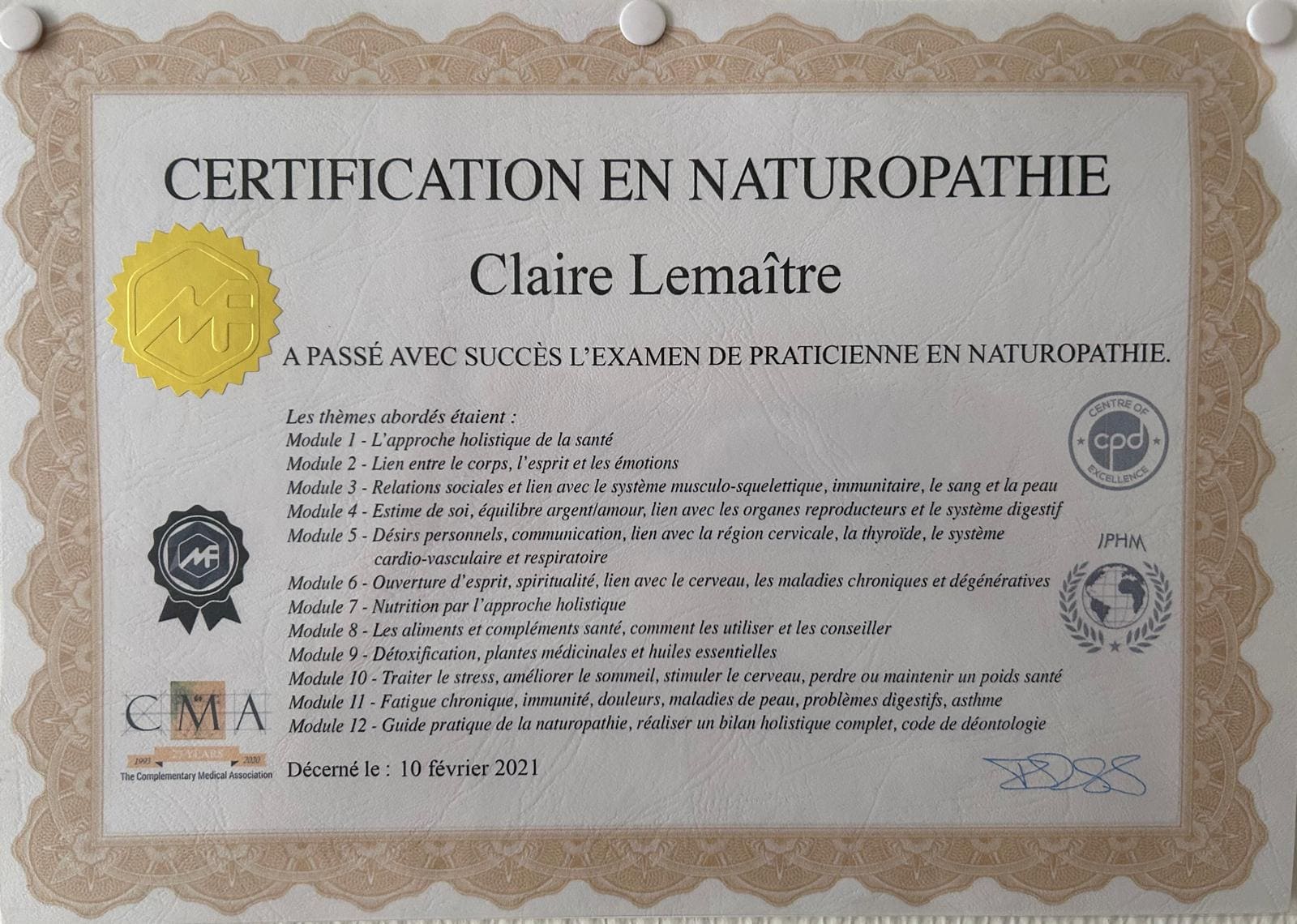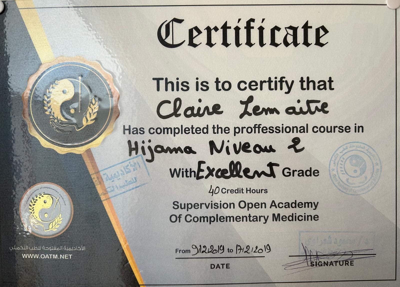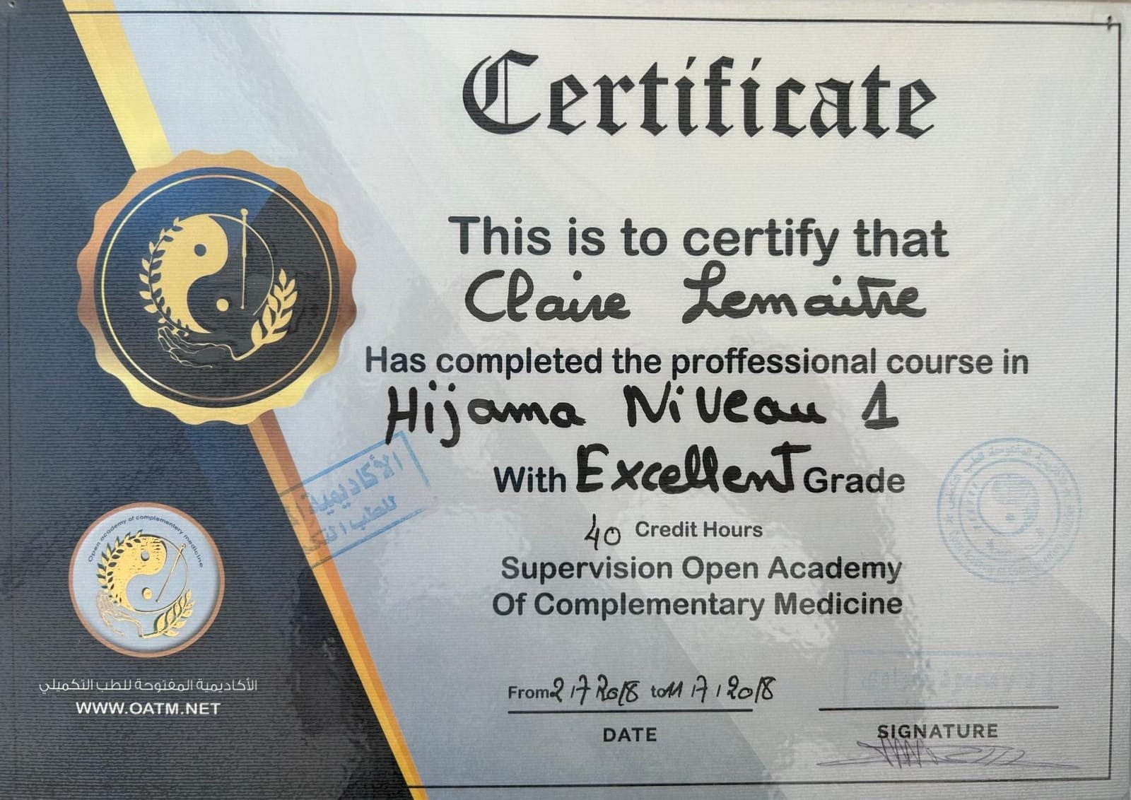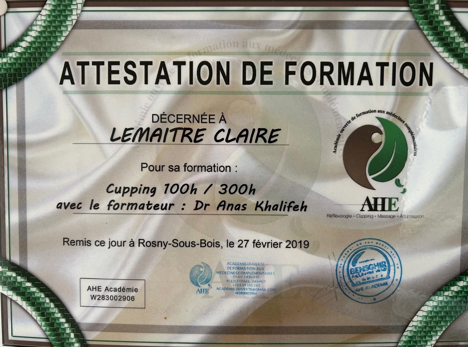 Mes formations Hijama et domaines d'expertise